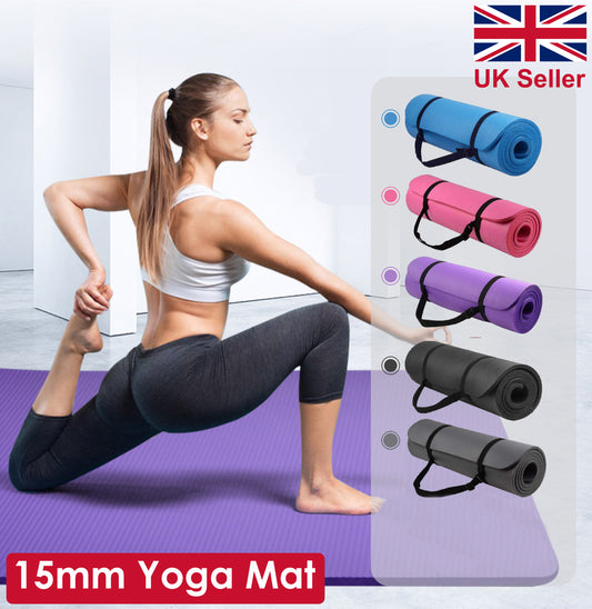 Yoga Mat 15Mm Thick Exercise Mat Gym Workout Fitness Pilates Home Non Slip NBR