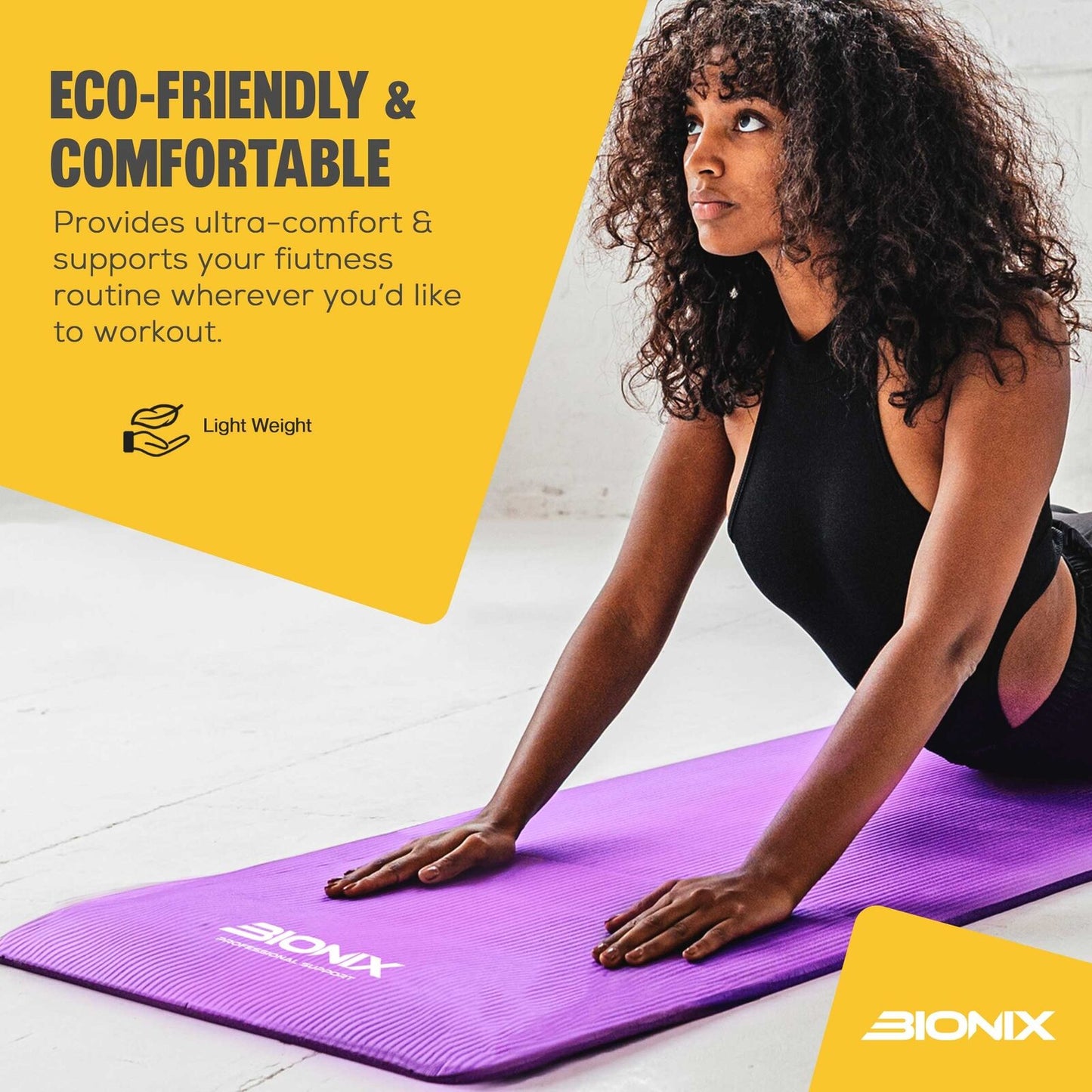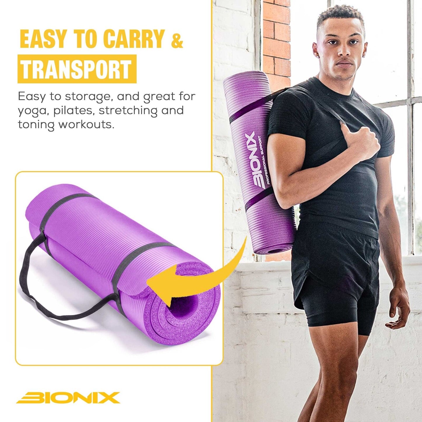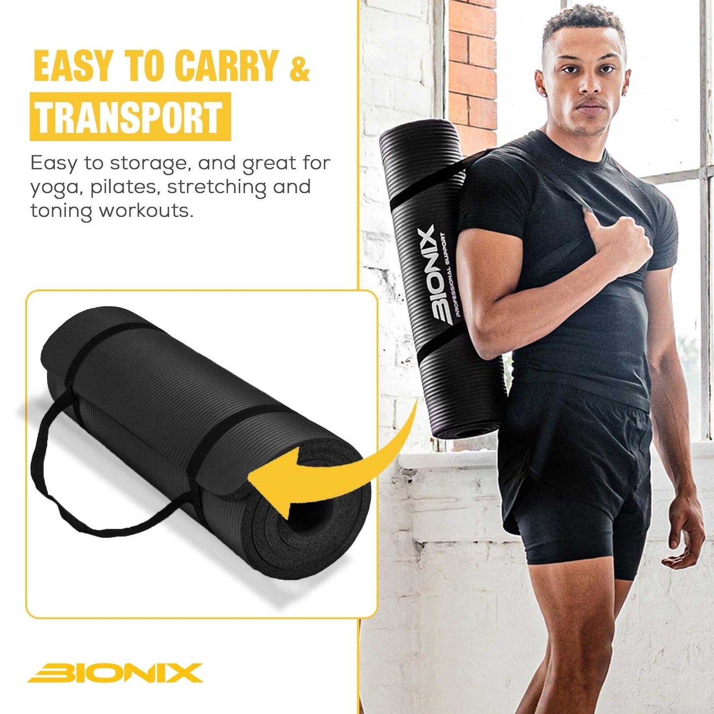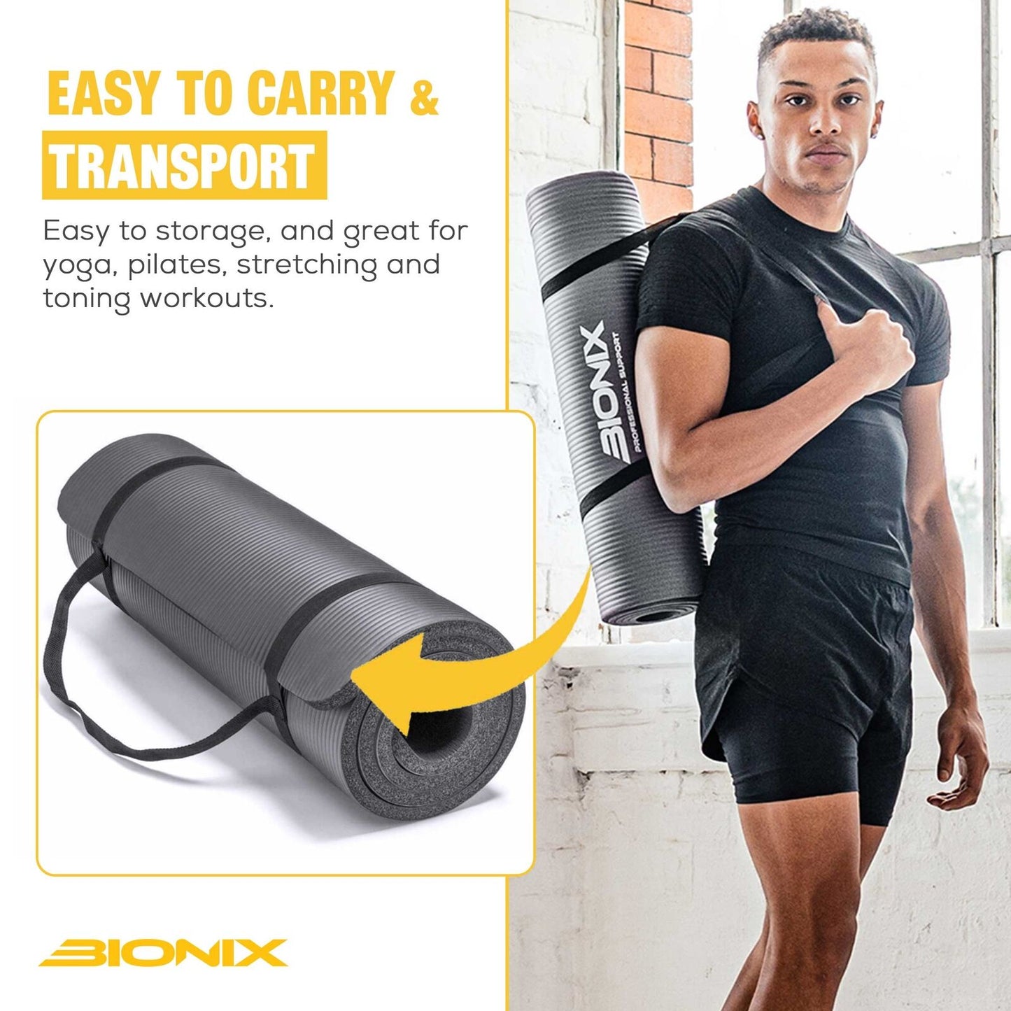 183X60 Yoga Mat 10Mm Thick Non Slip Fitness Exercise Pilates Gym Carry Strap NBR